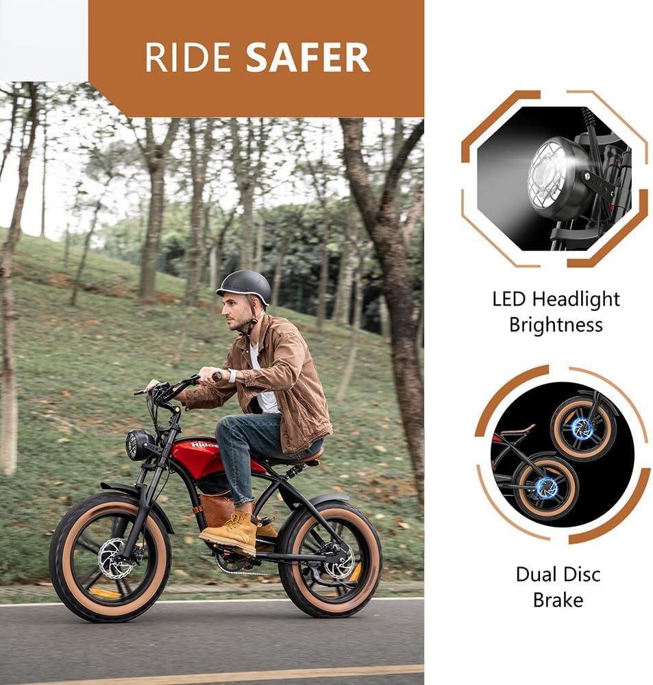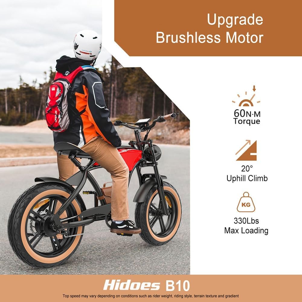 Ebikes for Adults,13Ah Battery 40-70Km Range,Hidoes B10 Fat Tire Electric Bike for Adults Up to 25Km/h, 60N·M Motor Electric Bicycle Retro E Bike,with Leather Bags,20″ Offroad Tire